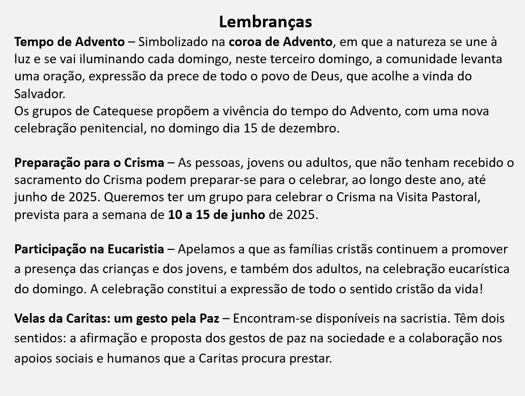 MENSAGEM DO TERCEIRO DOMINGO DO ADVENTO - 15 DE DEZEMBRO