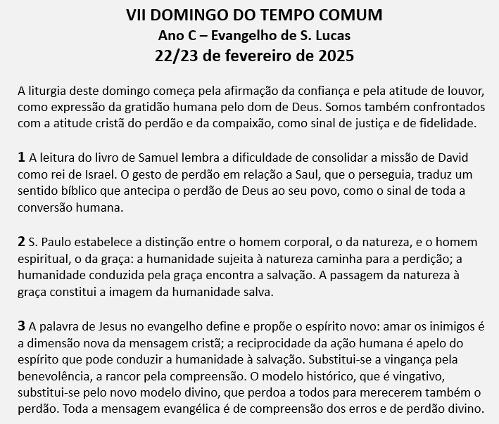MENSAGEM DO VII DOMINGO DO TEMPO COMUM - 23 DE FEVEREIRO DE 2025