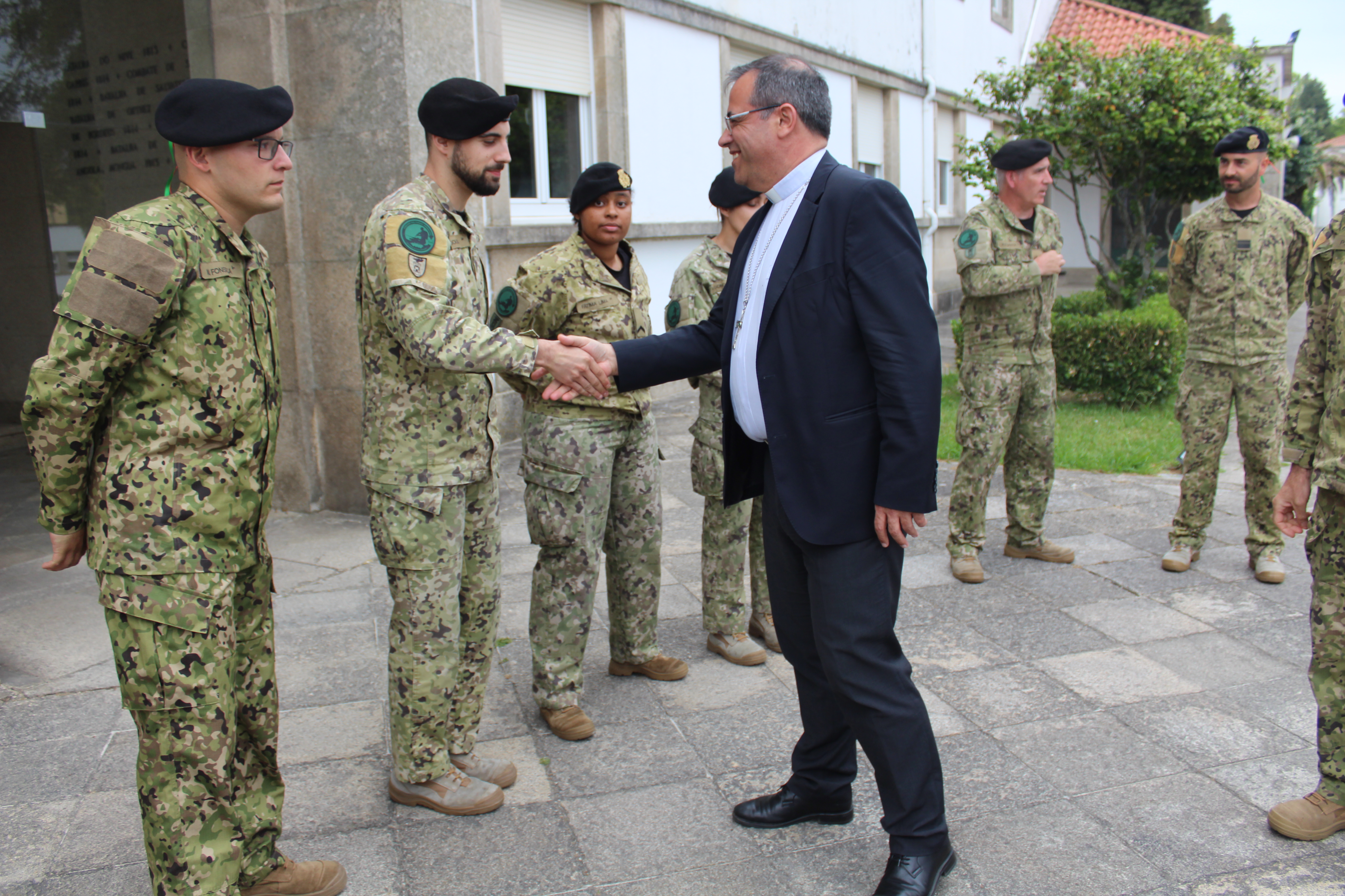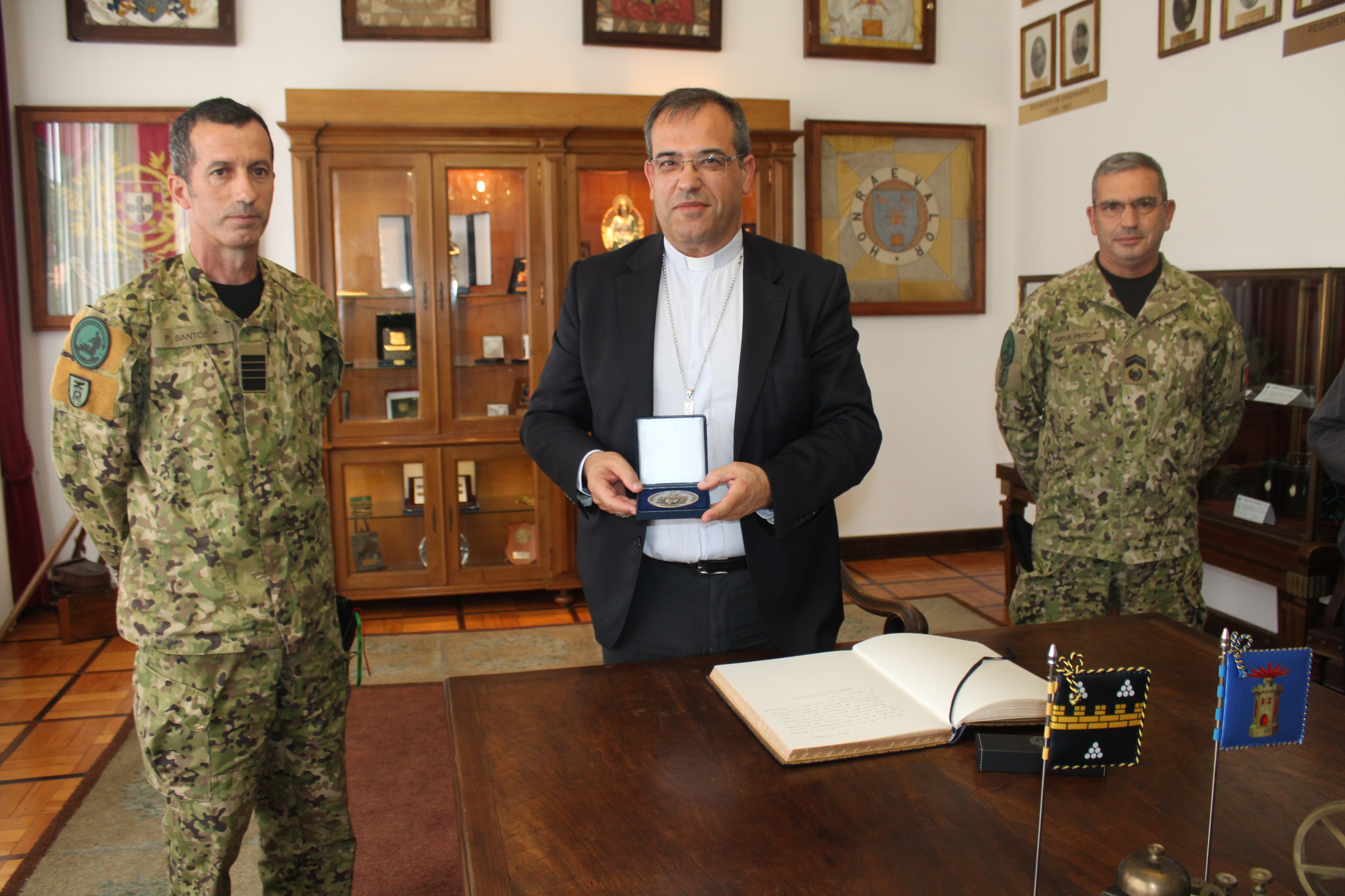No Regimento de Transmissões, o Sr. Bispo foi recebido pelo Comandante do Regimento, Coronel Coutinho dos Santos, e pelo seu estado-maior. Após as boas-vindas, em reunião com os visitantes, foi explicada a missão do Regimento de Transmissões e respondidas algumas questões colocadas pelos visitantes. O Senhor Bispo assinou o Livro de Honra do Regimento e recebeu uma medalha comemorativa da visita. Seguiu-se uma visita às instalações do quartel durante a qual foi dado relevo à formação técnica que os militares deste regimento precisam de adquirir.