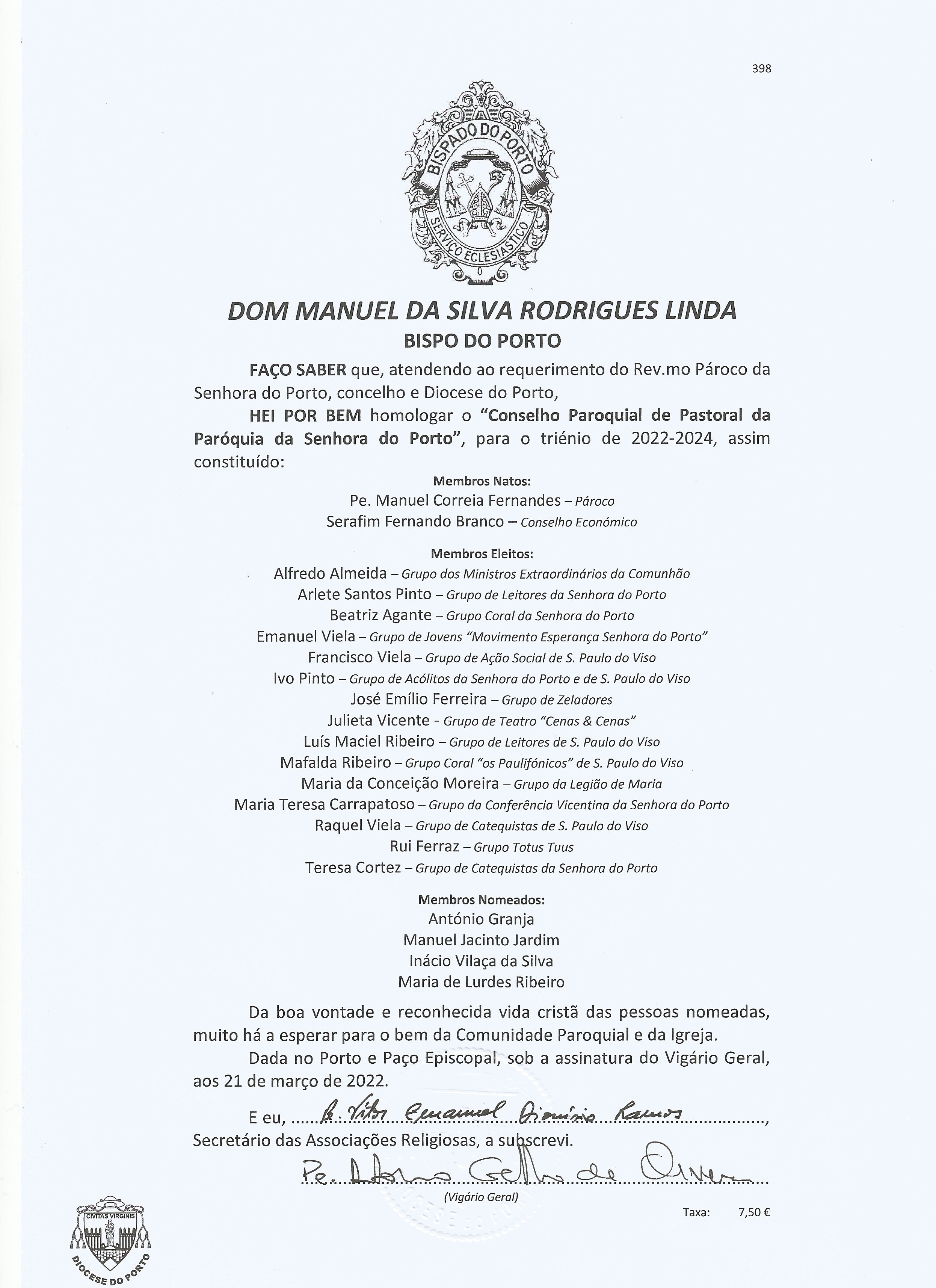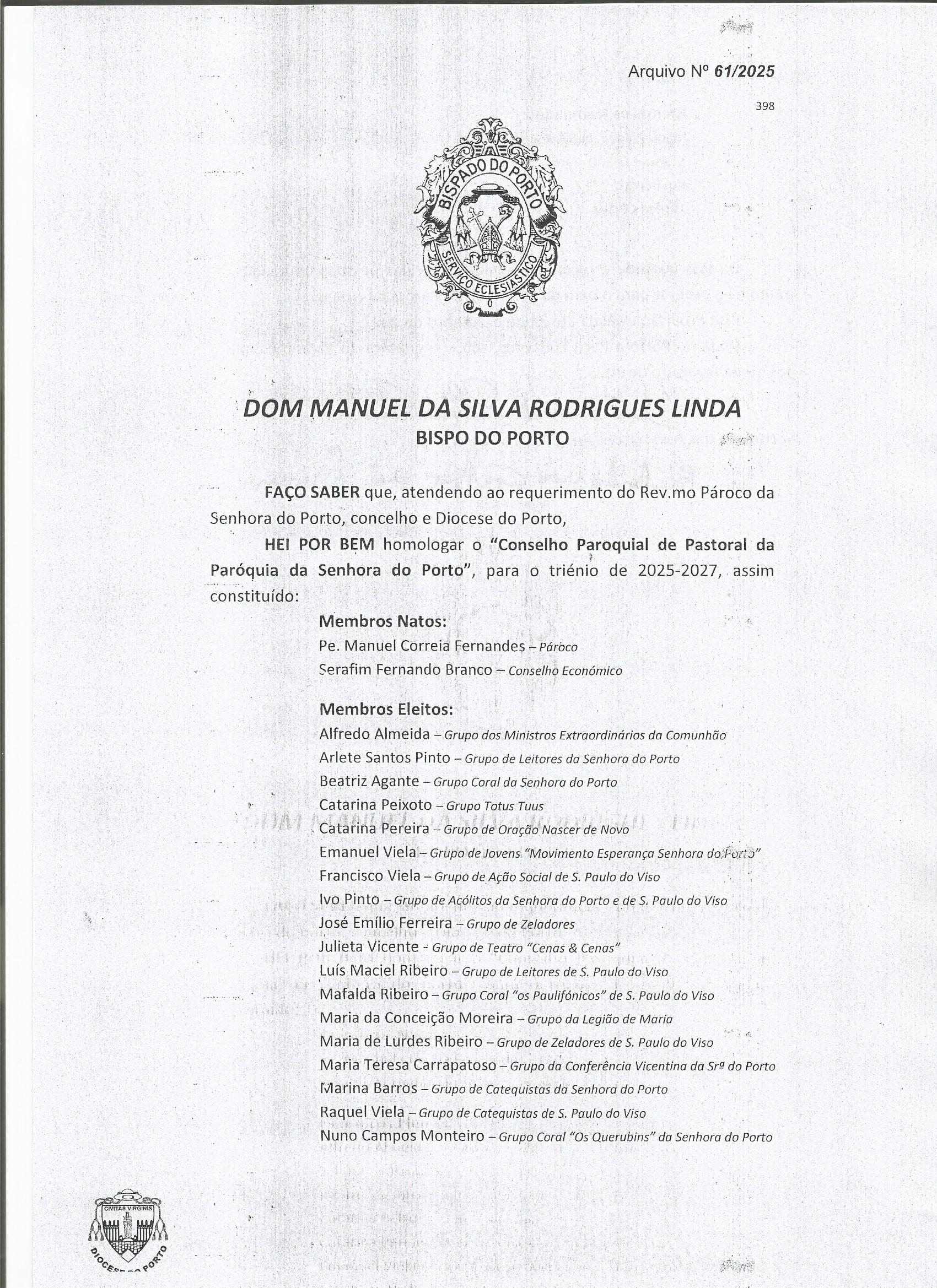 Pelas 16 horas, o Bispo auxiliar do Porto, D. Joaquim Dionísio foi recebido festivamente pela comunidade paroquial. Depois de um encontro com as crianças e jovens da catequese, respetivas famílias e catequistas, a que se seguiu um café paroquial, reuniu com os membros dos vários grupos paroquiais.
