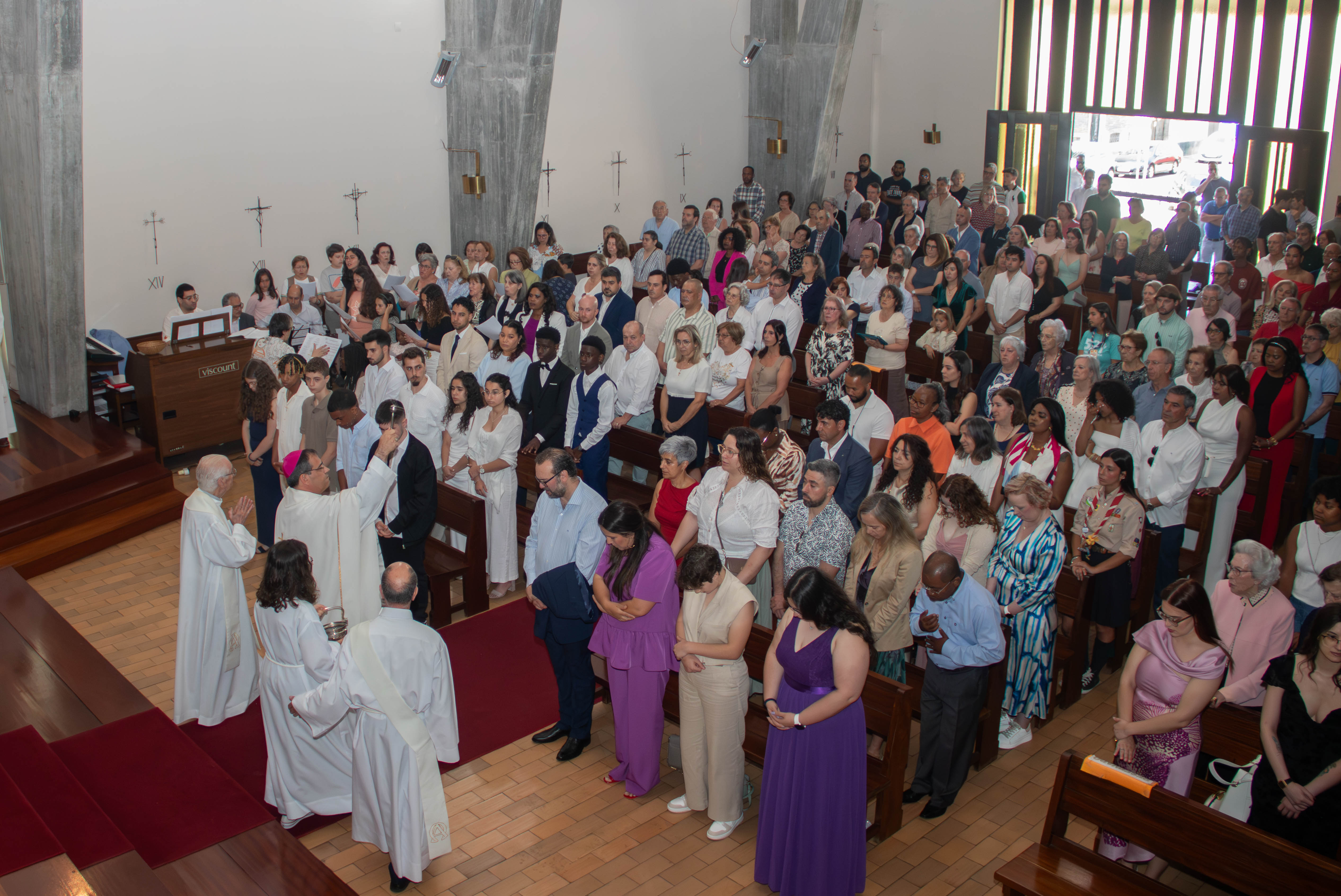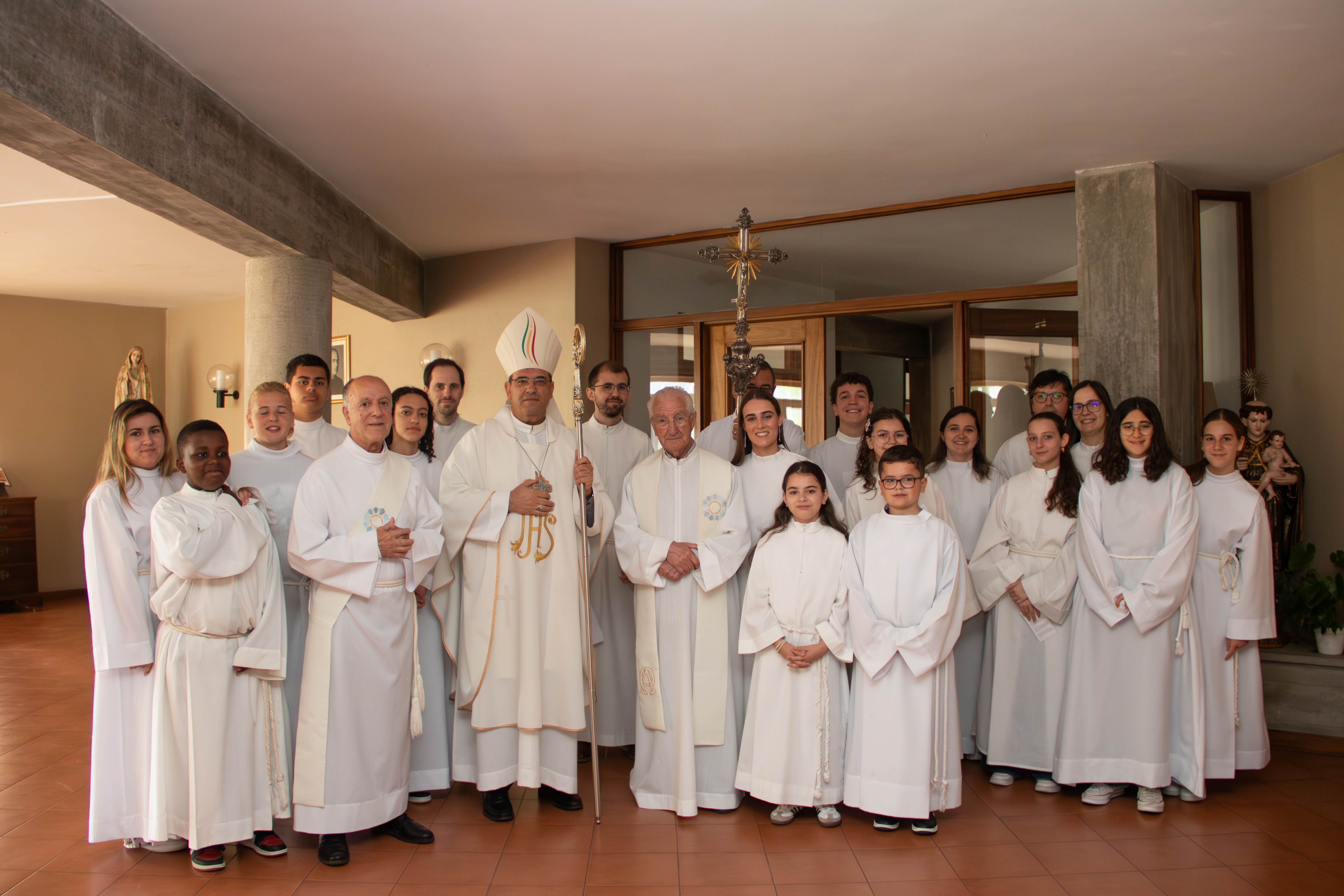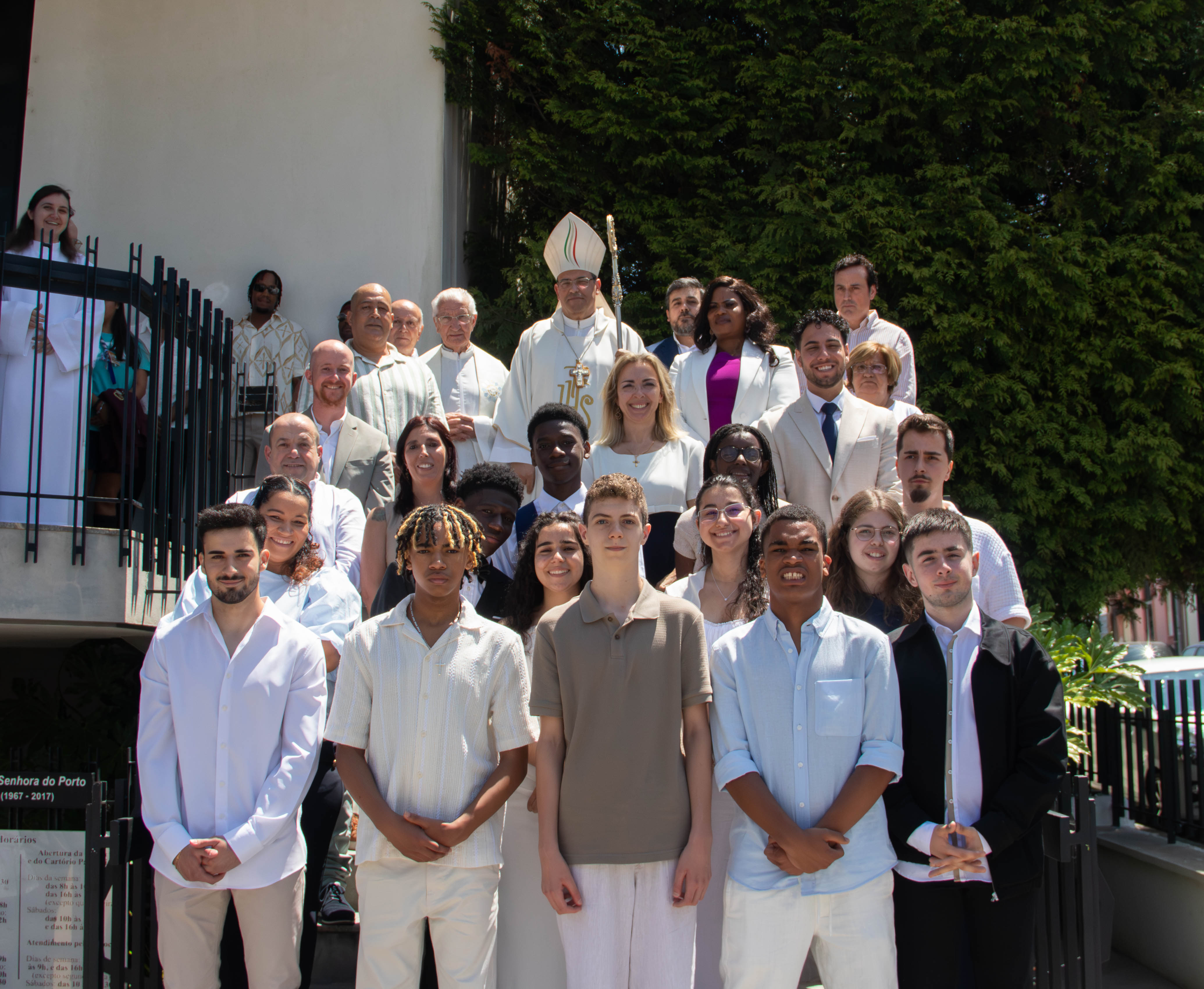 Este último dia da Visita Pastoral foi dia de grande festa na Paróquia: receberam o sacramento da Confirmação vinte e três paroquianos que fizeram o seu percurso de formação, na Sra. do Porto e em S. Paulo do Viso, durante o ano catequético. Presidiu à celebração das 11 horas, o Sr. D. Joaquim Dionísio, tendo com ele concelebrado o nosso Pároco, Mons. Correia Fernandes e o Diácono Fernando Almeida. Foi uma cerimónia muito participada e que decorreu com grande dignidade. Seguiu-se o almoço paroquial, na cripta da igreja, proporcionando mais um momento de convívio dos paroquianos com D. Joaquim. No final foram proferidas palavras de agradecimento e de despedida, tendo a comunidade oferecido uma pequena lembrança ao Sr. Bispo para marcar a sua passagem pela nossa paróquia, nesta Visita Pastoral 2025.