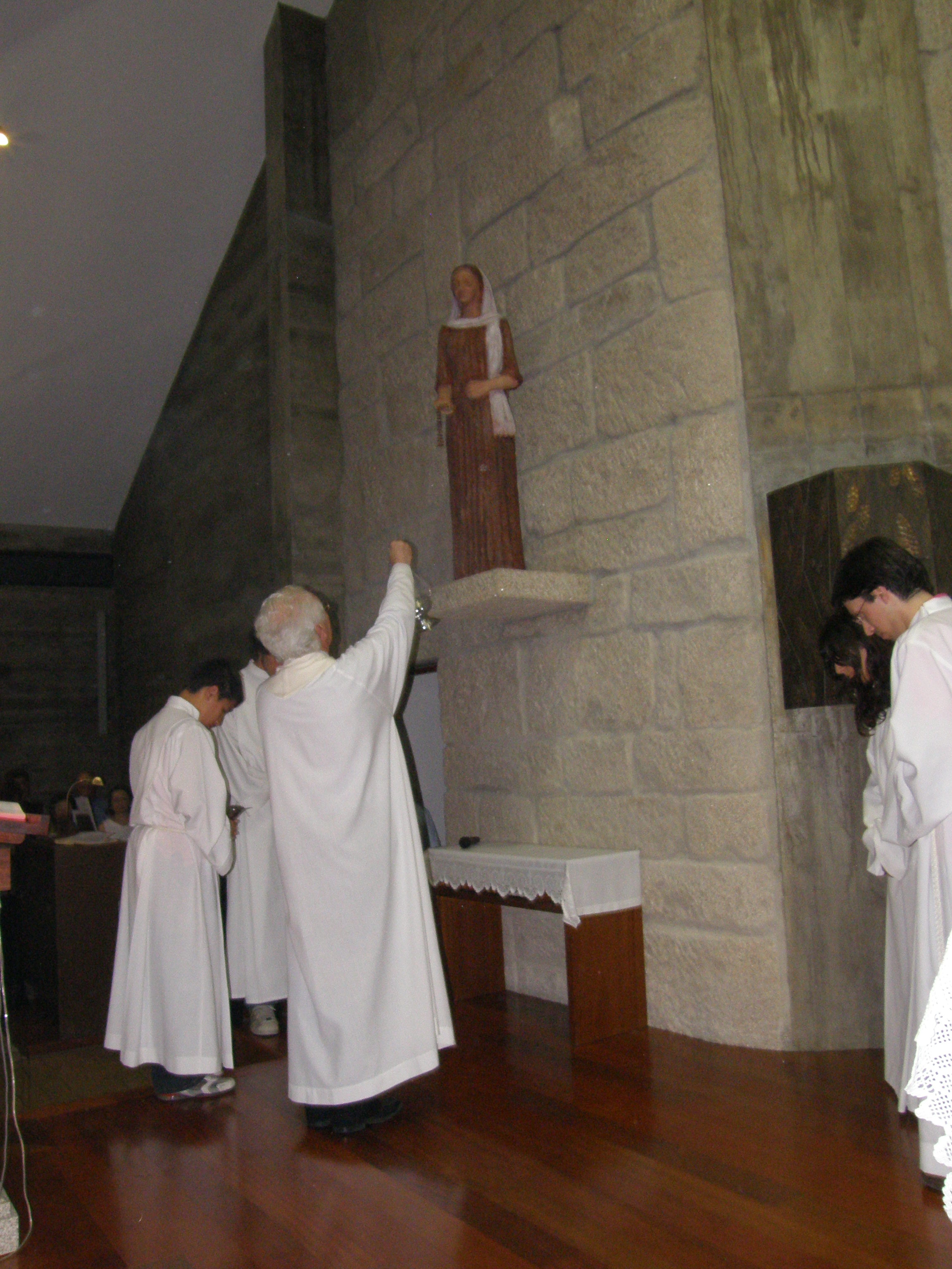 A cerimónia iniciou-se com a inauguração e bênção da imagem de S. Paulo, da autoria da Escultora Ana Carvalho. Foi um dos momentos altos do fim de tarde de Sábado: a força impressionante da imagem e o simbolismo dos “gestos” fixados pela artista deixaram a comunidade orgulhosa do “seu” S. Paulo que muito contribui para a valorização do património artístico da Paróquia.