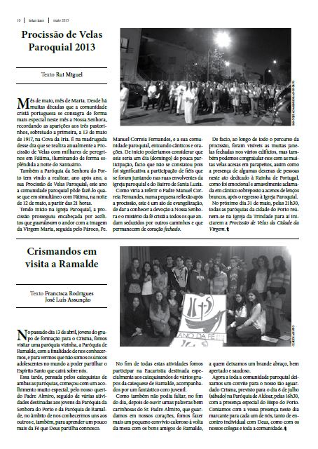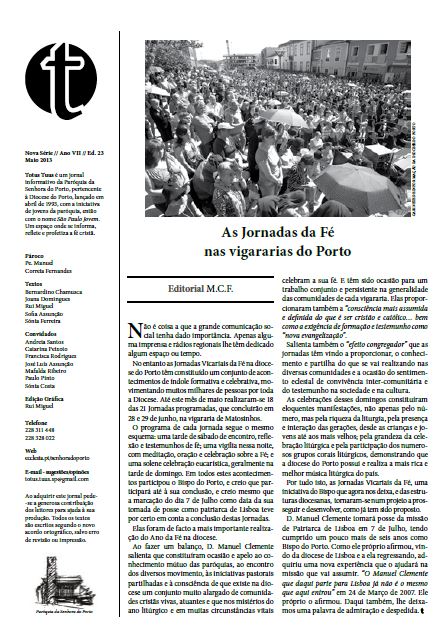 Desde Abril de 1993, o jornal paroquial Totus Tuus leva aos paroquianos reflexões sobre a vida da Paróquia ou artigos considerados de interesse geral.