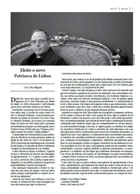 A versão integral do Totus Tuus de Março 2024 pode ser lido no ficheiro PDF